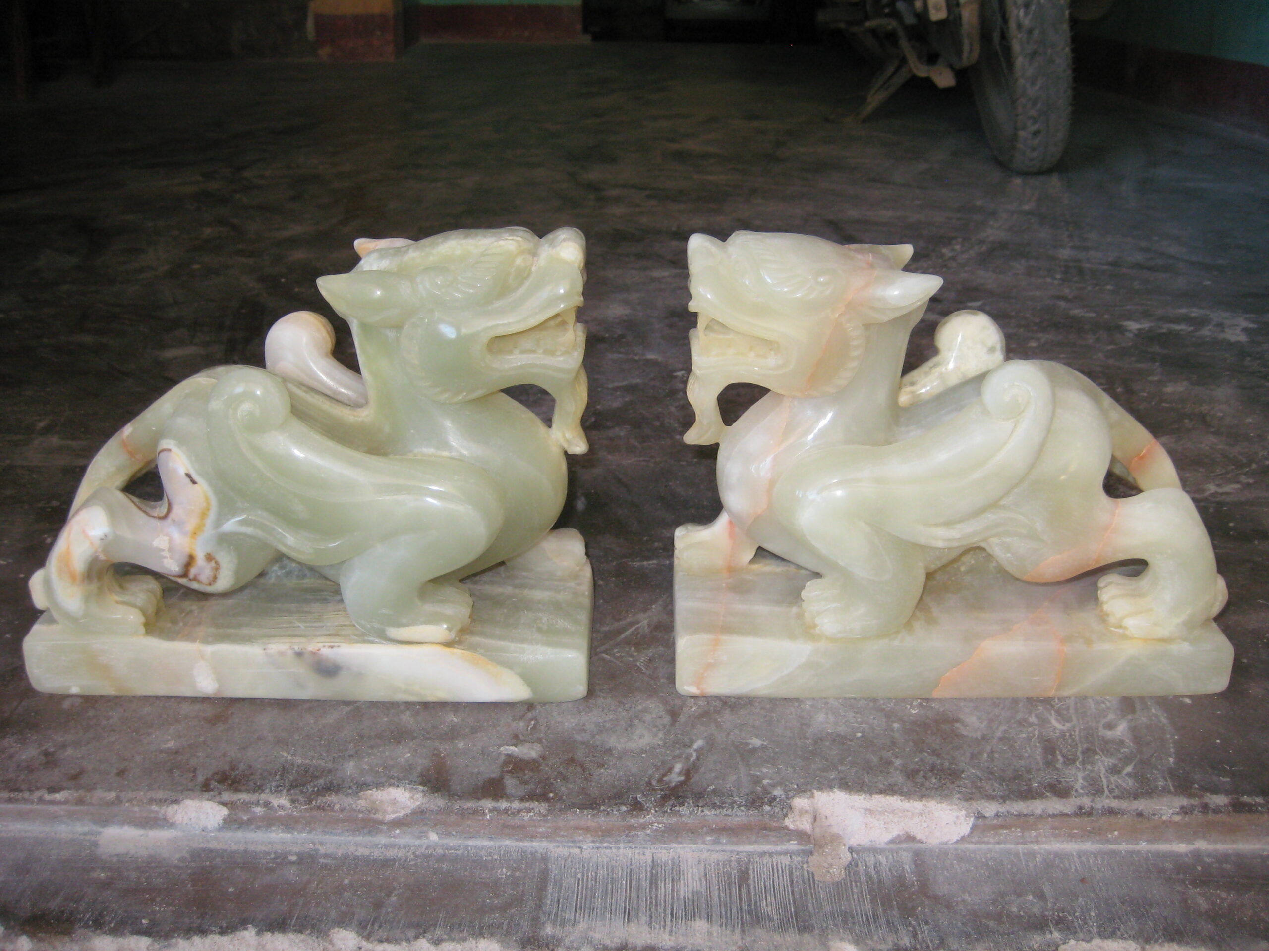 Hand-Carved Natural Pair Of Stone Unicorns for Bohemian Style Rustic Interiors