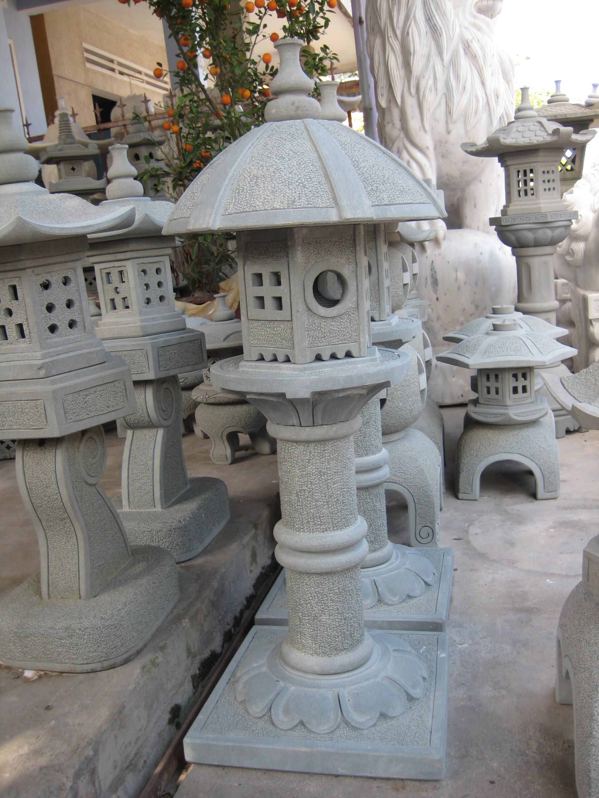 Hand-Carved Natural Stone Round Pillar Lantern for Relaxing Ambience