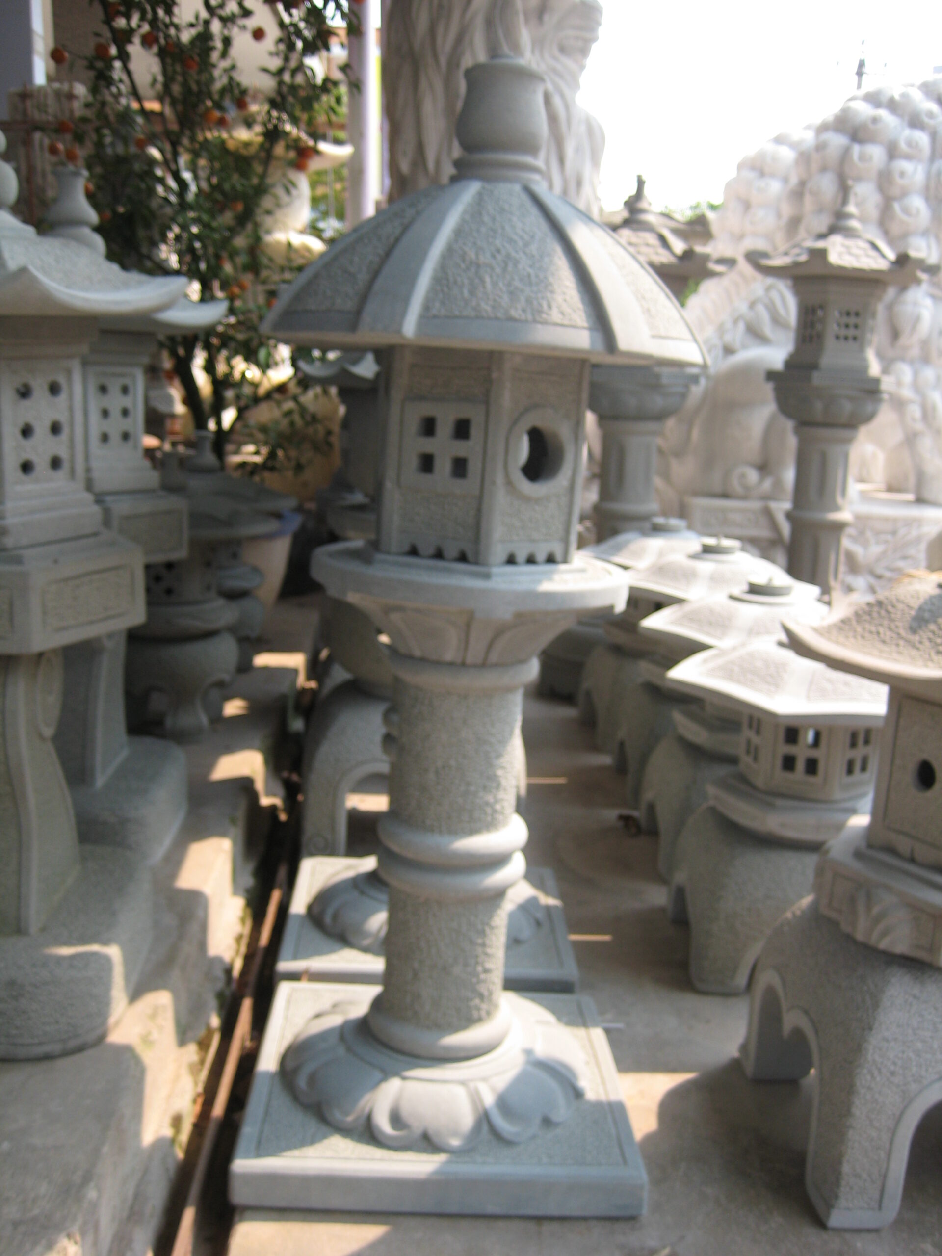 Hand-Carved Natural Stone Round Pillar Lantern for Relaxing Ambience