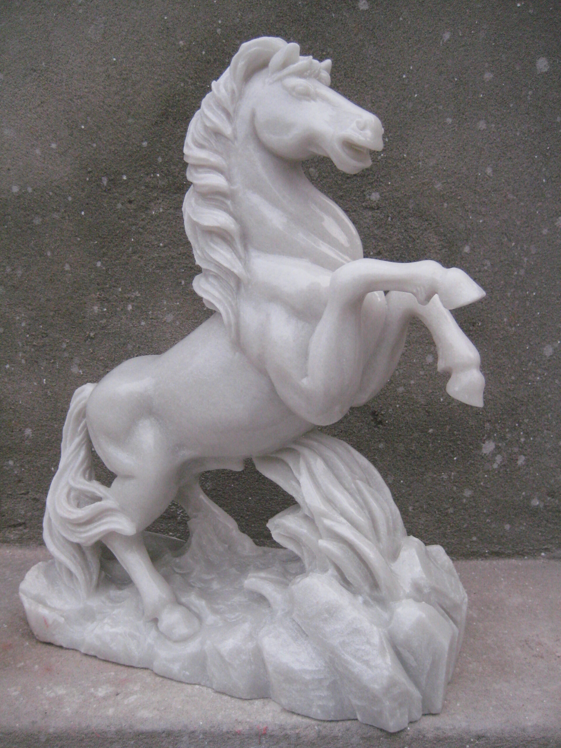 Hand-Carved Stone Kicking Horse Sculpture for Luxury Decor
