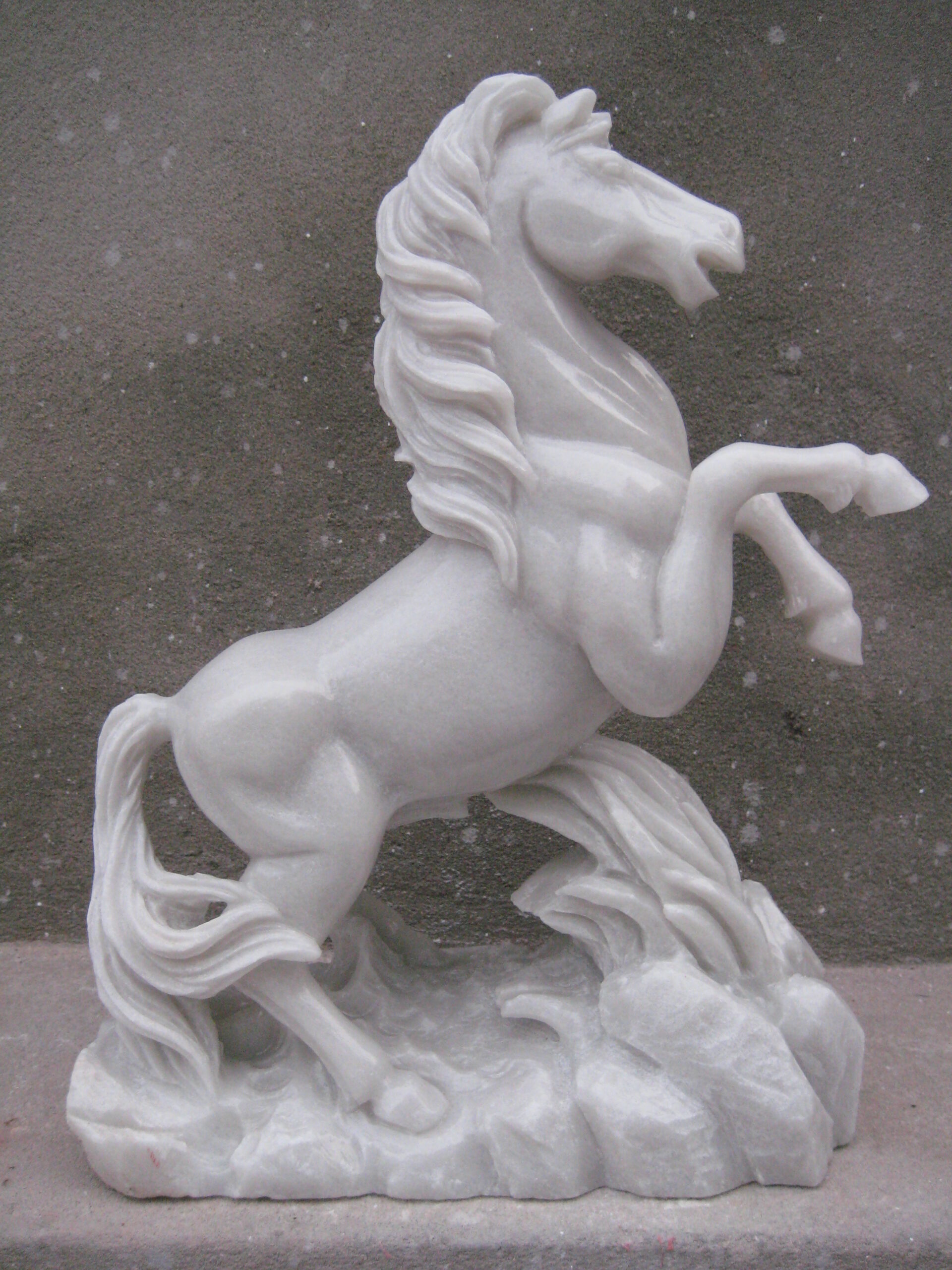 Hand-Carved Stone Kicking Horse Sculpture for Luxury Decor